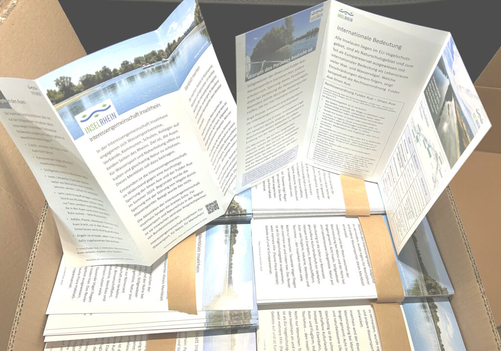 Ein kleiner Flyer wird jetzt kostenfrei an Wassersportvereine, Bootsverleiher und -Schulen, Campingplätze und weitere Rhein-Anlieger zwischen Mainz und Bingen, Rüdesheim und Wiesbaden verteilt. Er trägt den Titel „Merkblatt Inselrhein“ und wurde von der Interessengemeinschaft Inselrhein herausgegeben. Das Merkblatt enthält Regelungen bei der Befahrung des Inselrheins. Es soll aufklären und mithelfen, Konflikte zwischen den verschiedenen Interessengruppen auf dem Inselrhein zu verhindern. Die Druckkosten wurden vom Motor-Yacht-Club Bingen e.V. gesponsort.